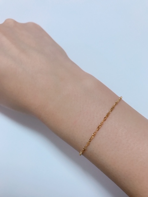 먼저 심플한 니트체인 제품이에요. 실제 제품 이름은 Knit Bracelet 입니다. 아마 니트모양처럼 체인이 엉켜있어서 니트 팔찌인걸까요? 잘은 모르겠지만, 제 생각엔 그러지 않을까? 하는 생각이. 그리고 체인이 꼬여있는 느낌이다보니 여러방향에서 빛이 나서 일반 팔찌보다 더 반짝이는 느낌이 있어서 좋았어요.