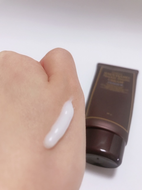 실제로 제형은 유수분 밸런스가 잘 맞는 부드러운 사용감을 가지고 있는 크림이에요. 향도 특별한 향이 없어서 무난하구요. 유백색을 띠고 있는 일반 수분크림과 비슷하답니다. 피부에 바르면 촉촉한 유수분 보습이 오래 유지되어서 피부에 부담스럽거나 무거운 느낌이 없어요.