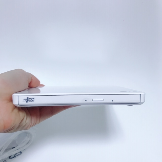 깔끔한 디자인이 확실히 마음에 들었습니다. 무게는 제가 다른 ODD제품을 들어본 적이 없어서 정확히 모르겠지만 엄청 가벼운 것도 아니고 적당히 가벼운 것 같아요. 크기는 너비 x 높이 x 깊이 순으로 144mm x 17.5mm x 135.5mm, 무게 200g이니까요. 감안하시면 좋을 것 같습니다.