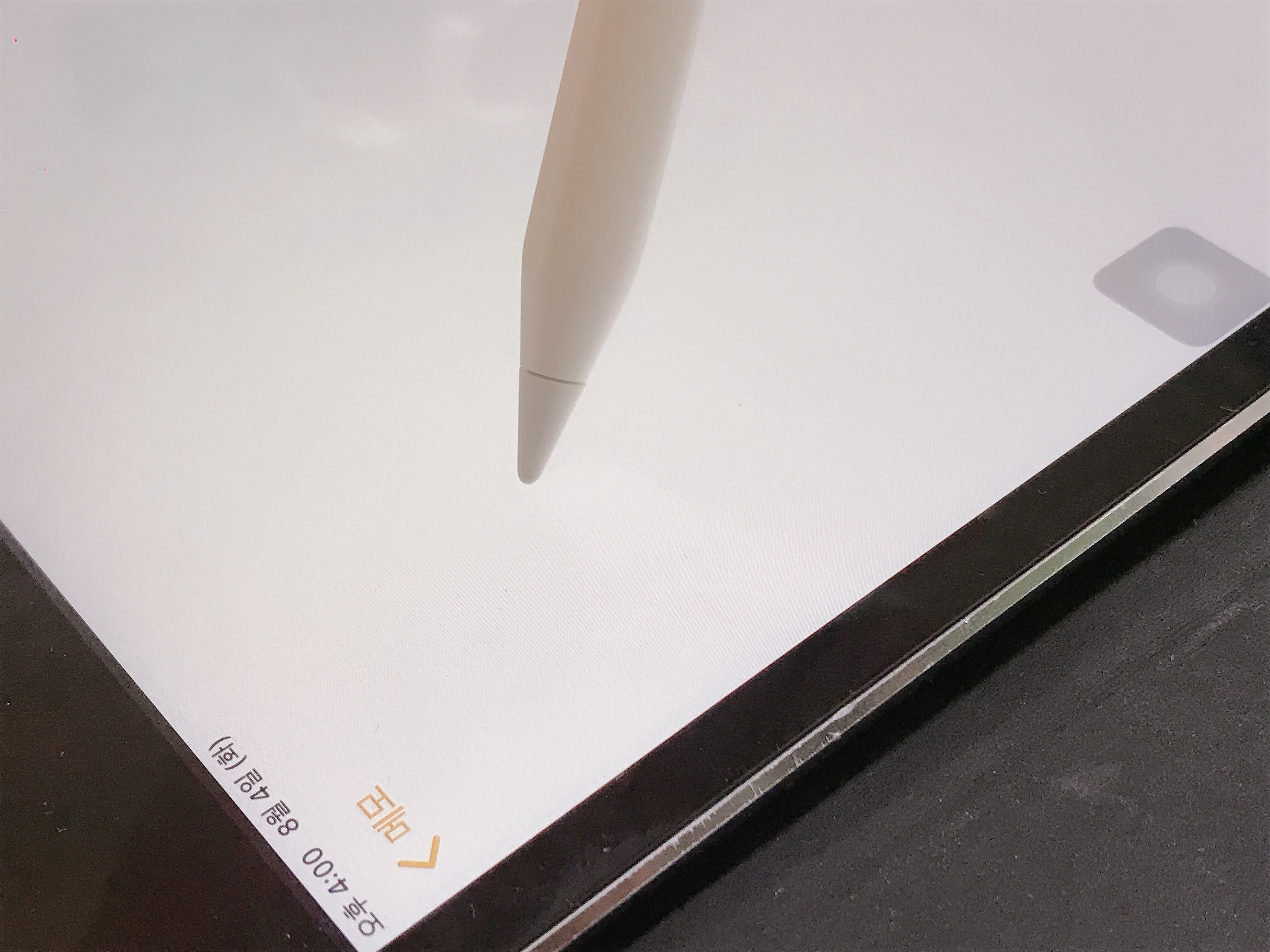 이번 애플펜슬 2세대의 특징은 바로 그립감을 잡아주는 이 평평한 부분인데요. 기존에 1세대가 둥글둥글했다면 확실히 이 부분을 넣어서 좀 더 손이 편하게 펜슬을 잡을 수 있게 도와줍니다.